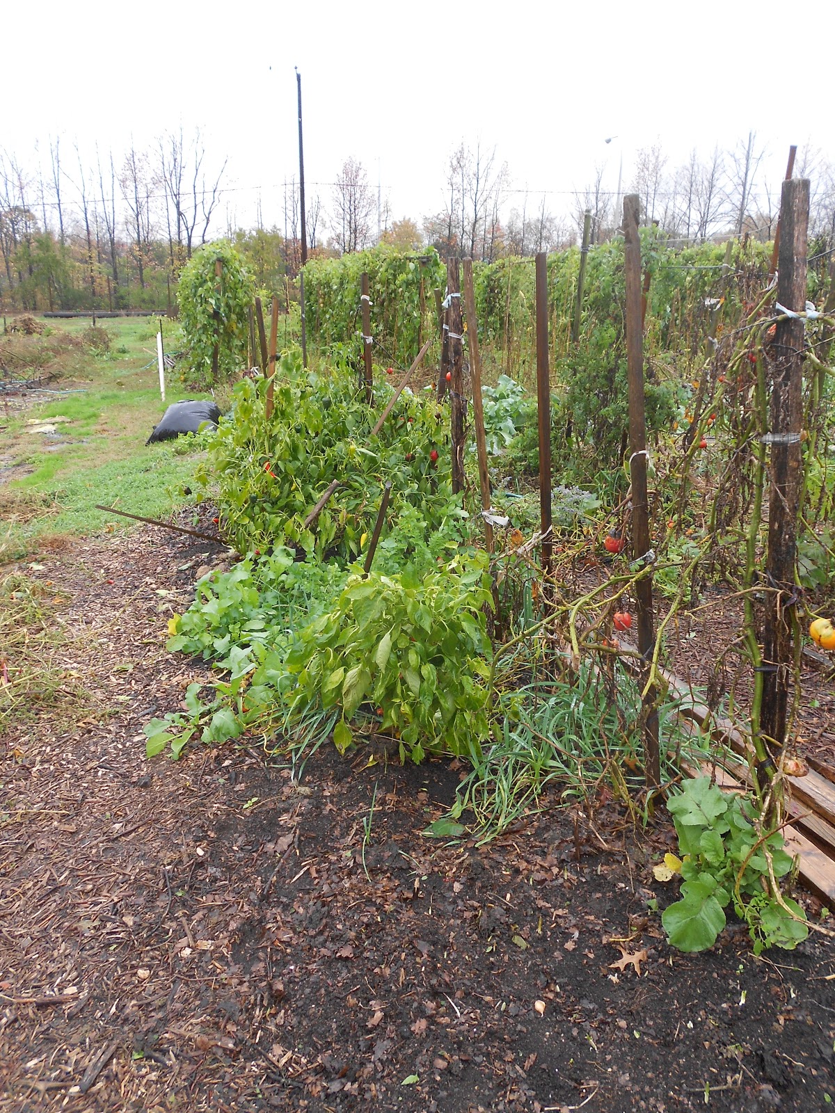 Most of the tomatoes that were put out early in May are done, having run out of gas even if they were indeterminate plants. However, some of the plants that were started from cuttings in June or early July are still looking alright, particularly two Chocolate Cherry plants over at the park.